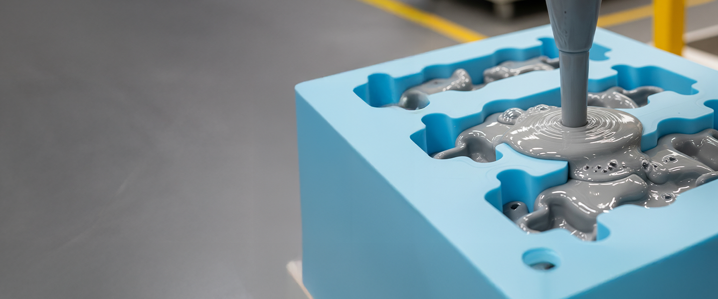 3. Pour liquid polyurethane resin into mold, create polyurethane casting under vacuum
